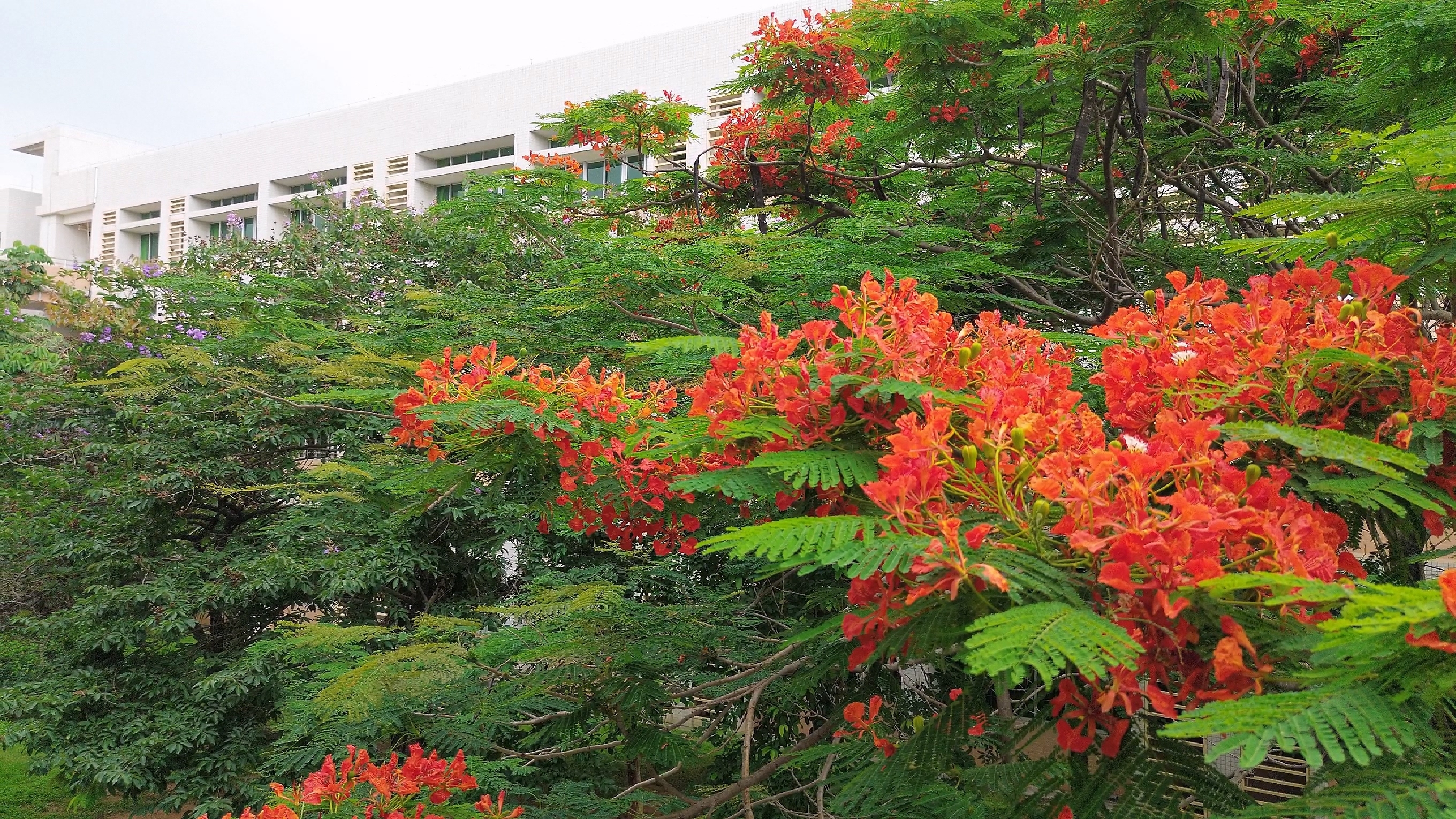 艳山姜、荷兰花木与紫薇将校园装点成夏日独特的模样
